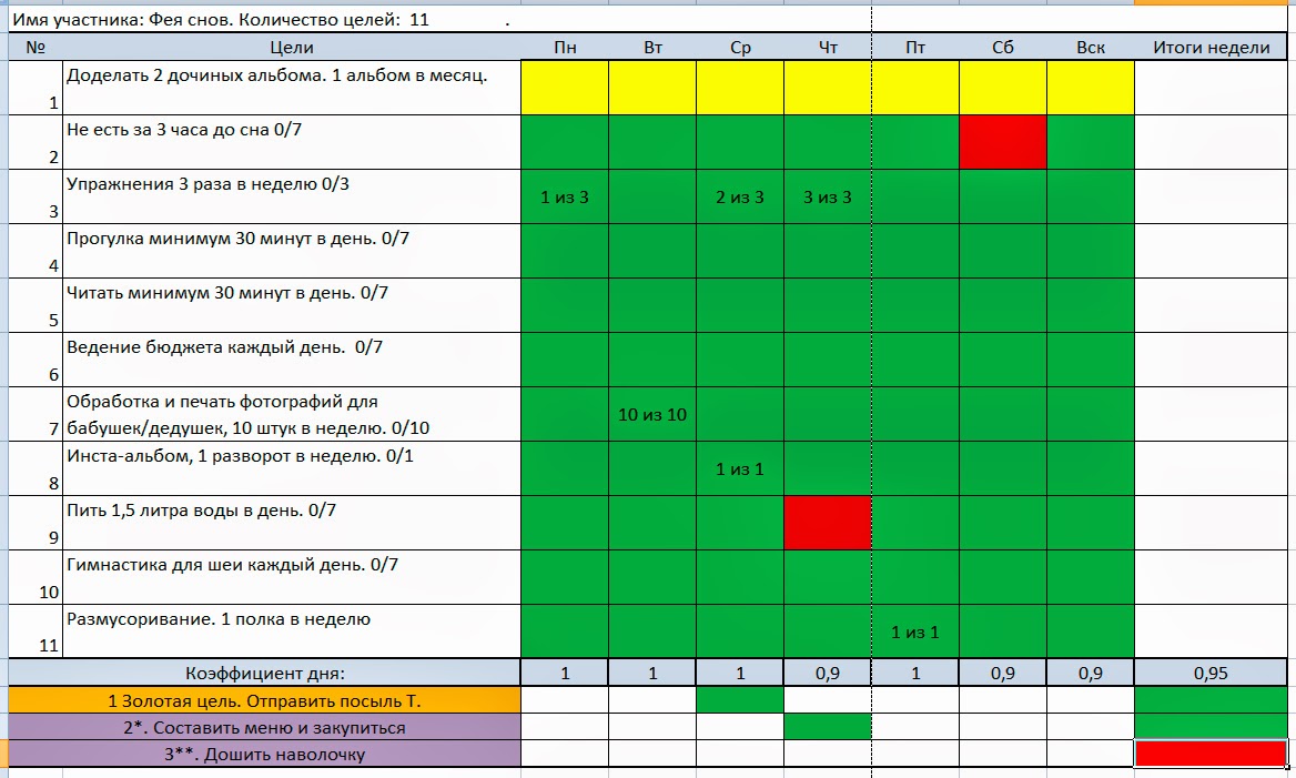 УдалитьНаташа, как всегда основательно пошла по пути выполнения своих целей)))))))))))) Прям вот горда тобой, ага)))) За табличку отдельное спасибо - вела, записывала, всё наглядно учтено, и сразу видно всю твою динамику и западающие моменты))